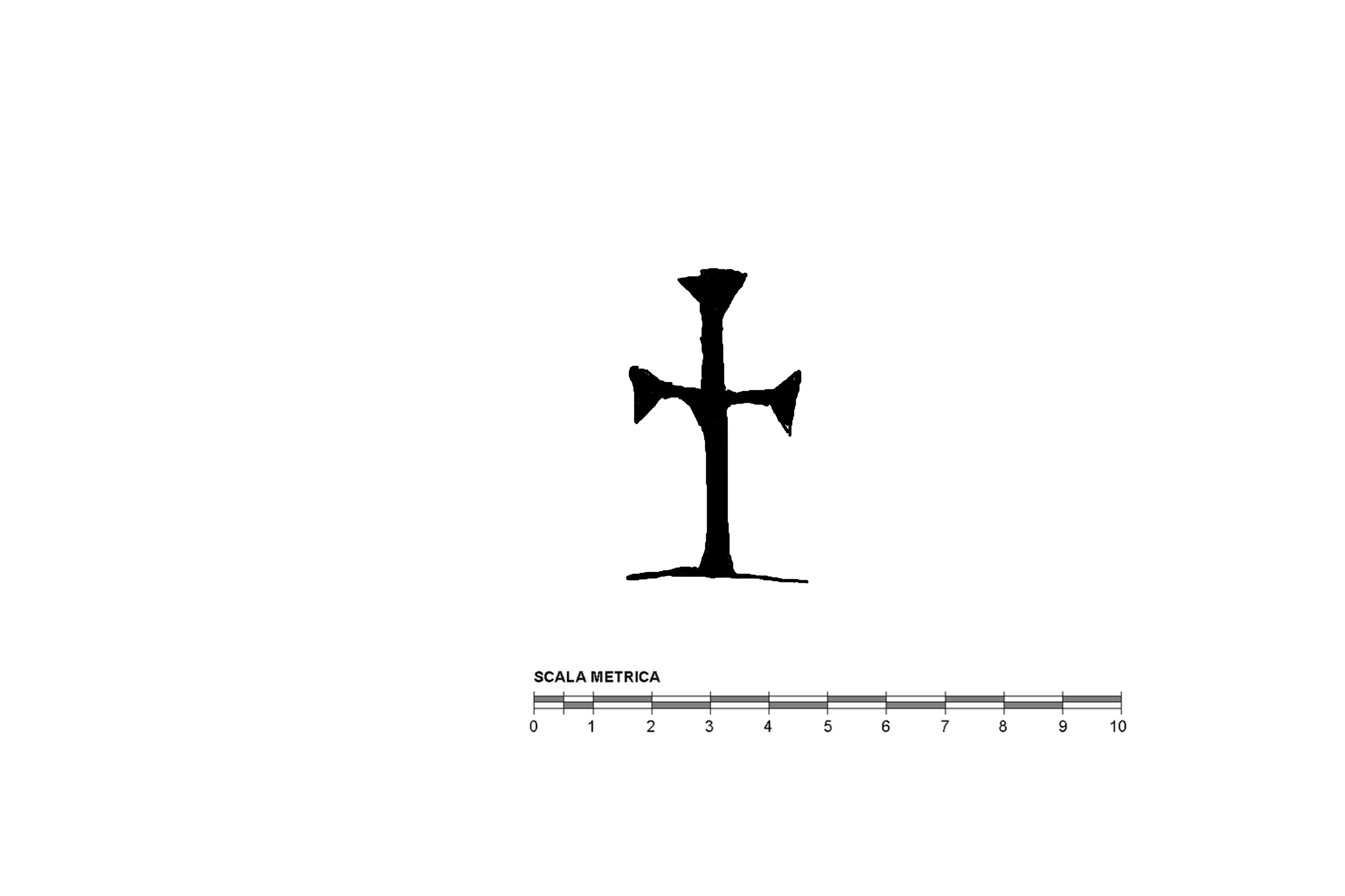 La croce, potenziata, presenta alla base un tratto di appoggio esteso-